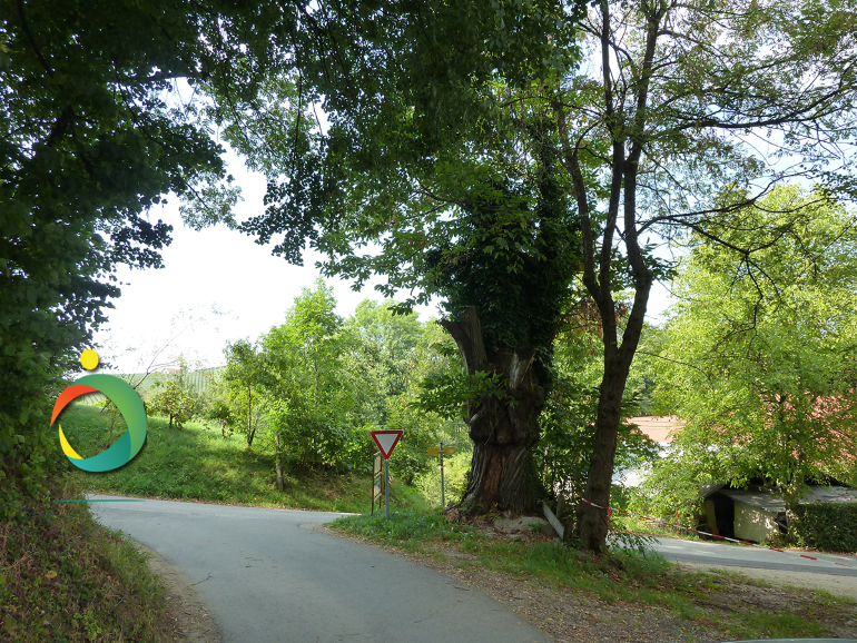 po glani cesti zapelješ skozi dvorišče vinarstva in pri velikem kamnu na desni zavij levo